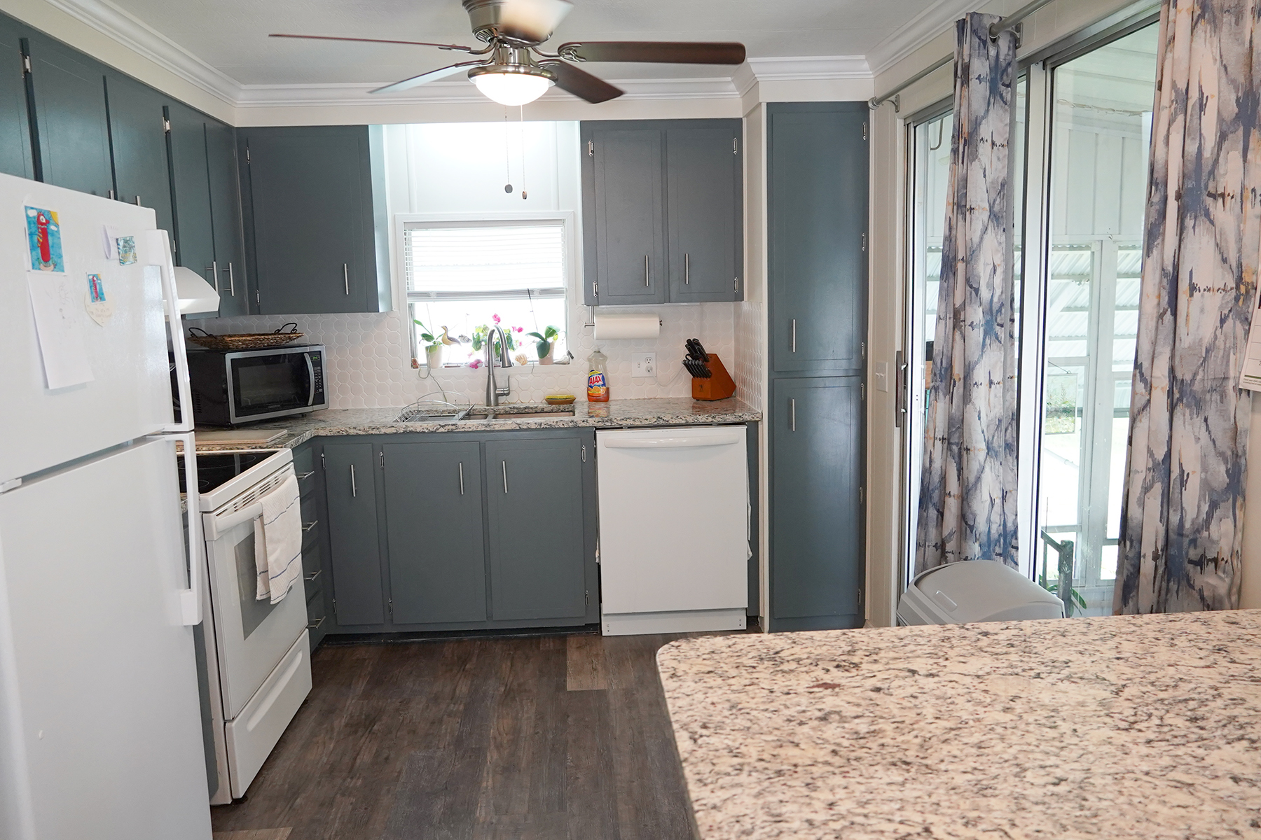 • Recently remodeled interior! Vinyl Life-proof flooring, granite counter tops, New A/C • Updated bathrooms with tile surrounds • Large corner lot close to amenities! Pool and hot tub are just a short walk away! • Florida room off of kitchen is a peaceful retreat |