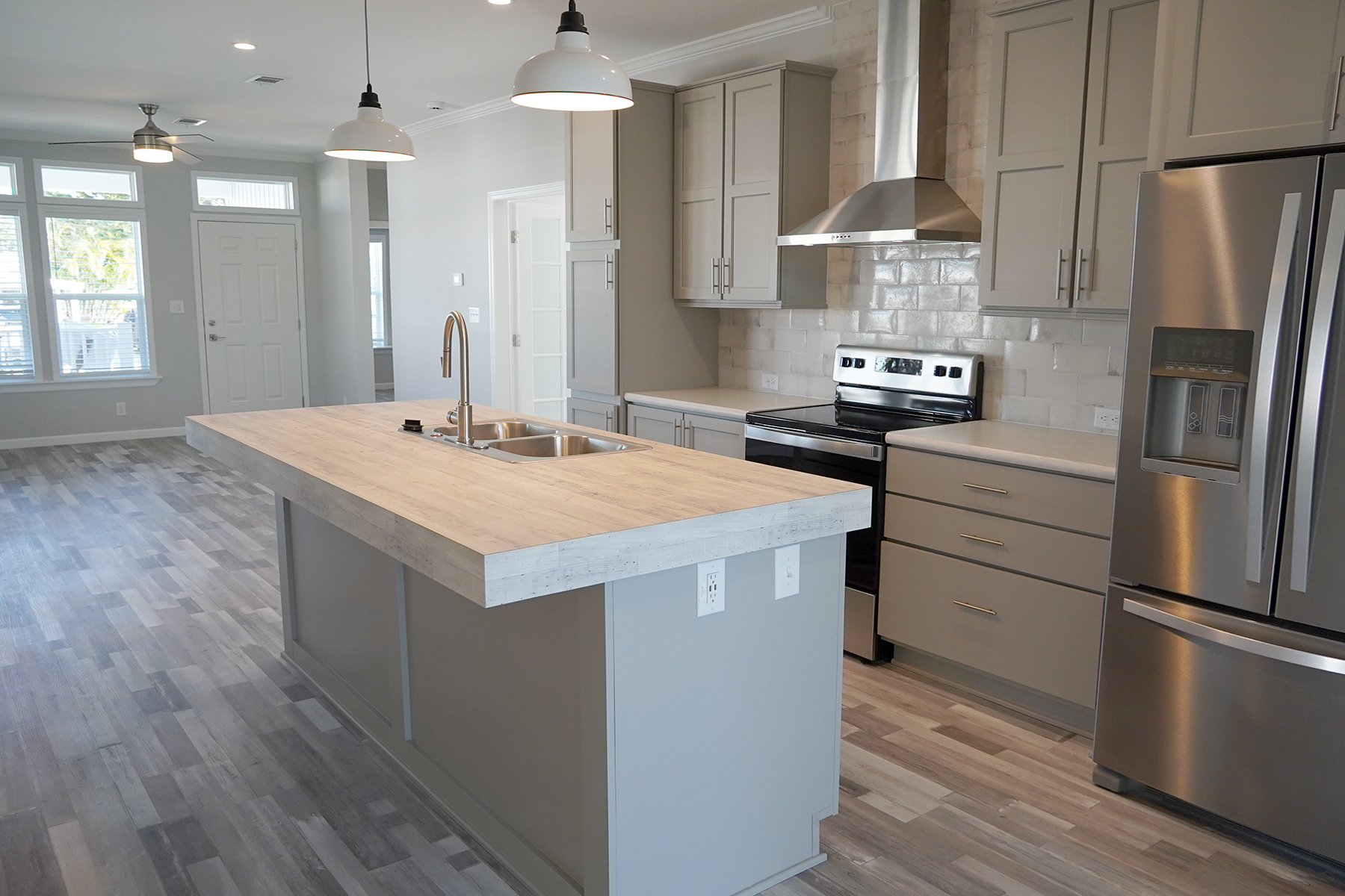 • 2 bedroom, 2 bath + Den • 9’ flat ceilings & Waterproof Vinyl plank flooring throughout! Full laundry room with sink • Large recessed front porch! |