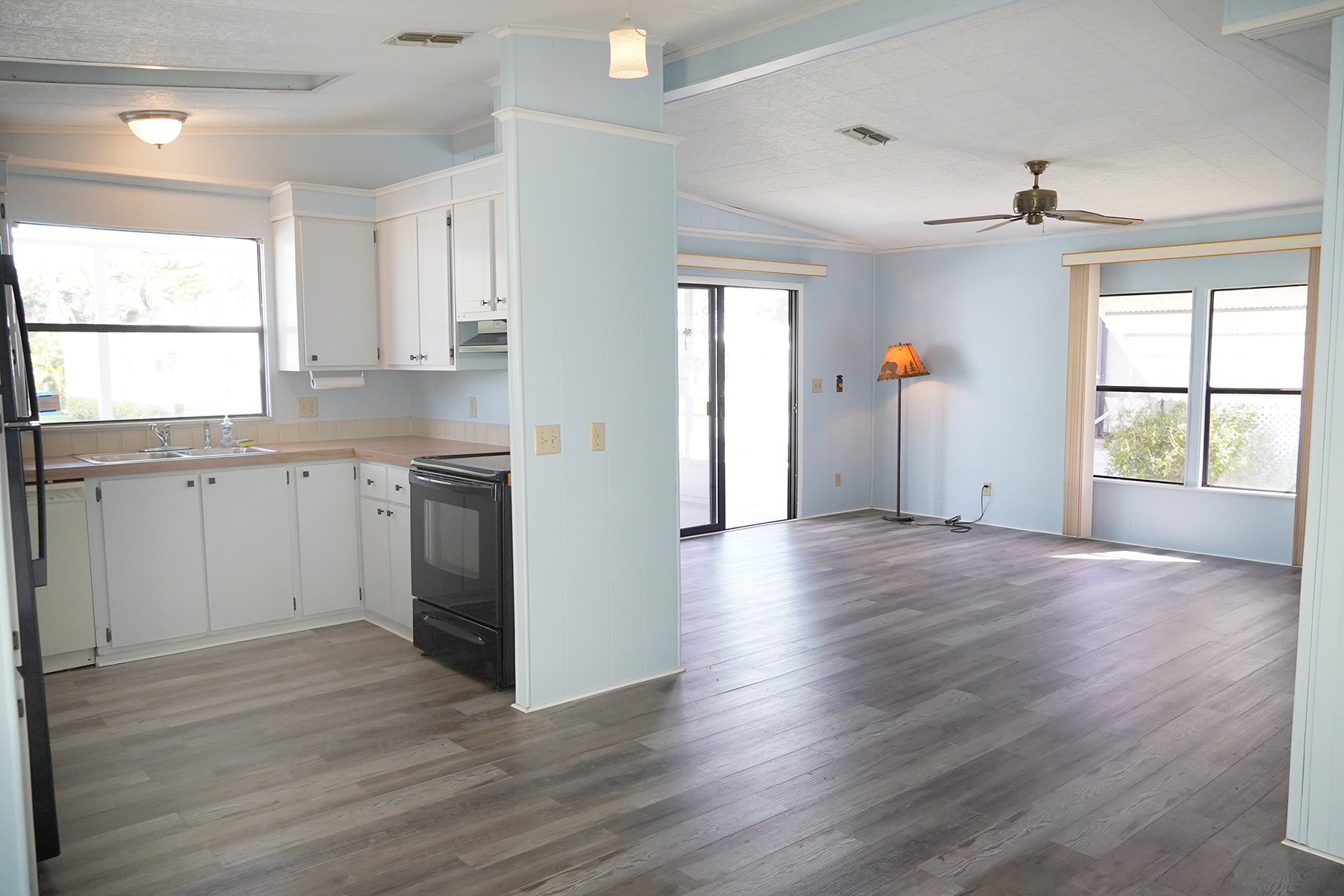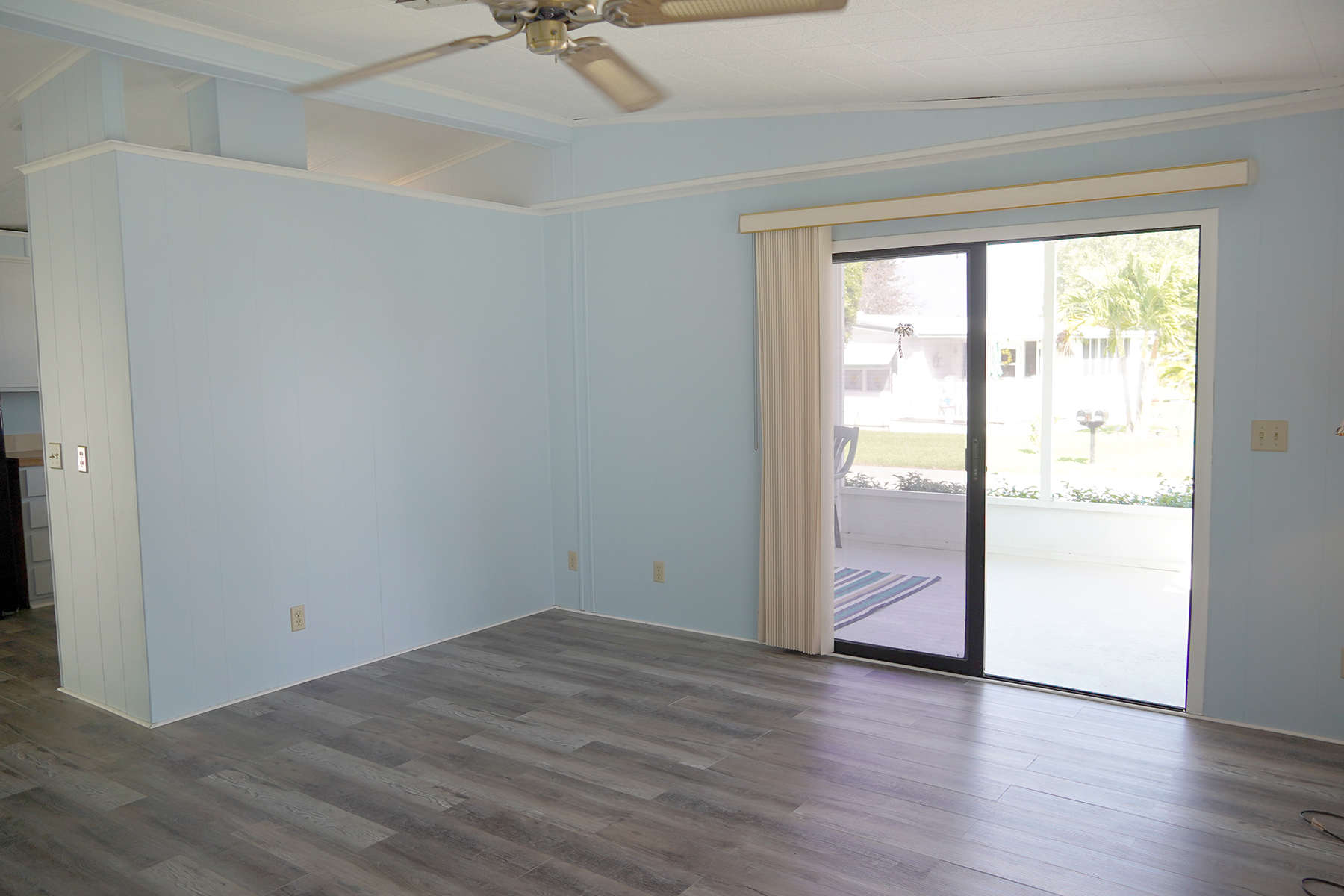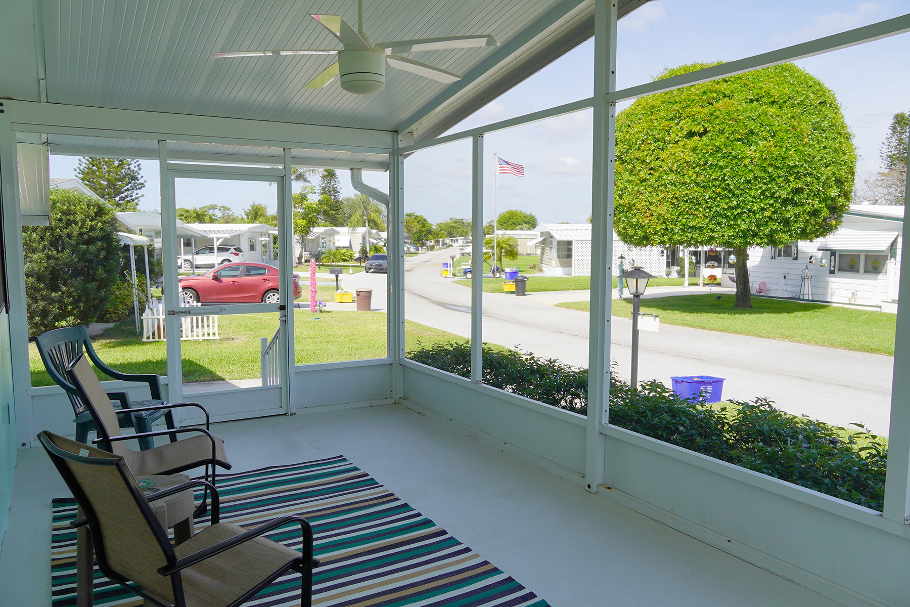 • $8k appliance credit!! Light, bright and airy! Florida living at it’s best with a large screened in porch across the entire front of the home. • New floors! Plywood subfloor with laminate wood, Updated vanities in the bathrooms • Cathedral ceilings in the living areas |