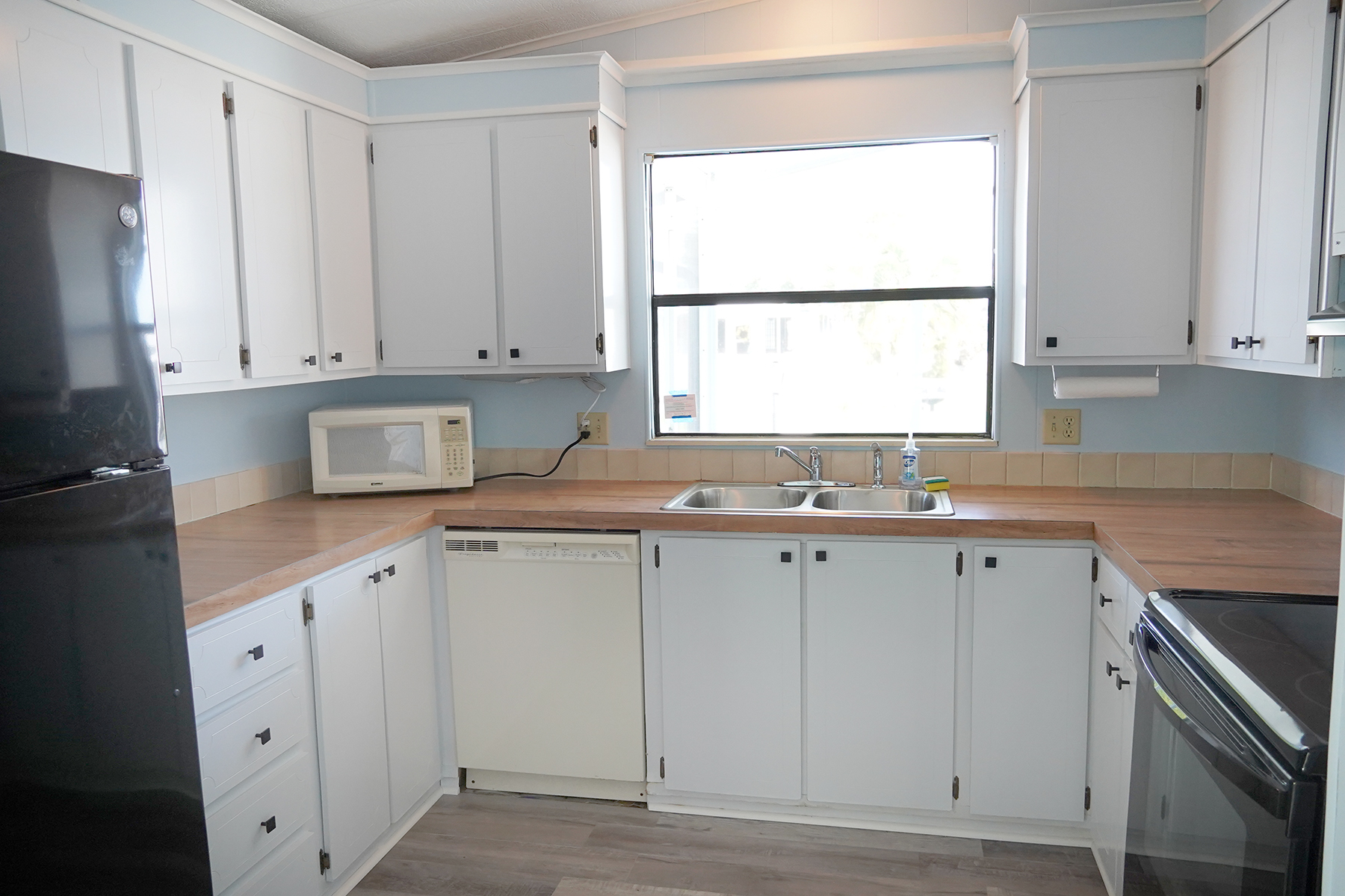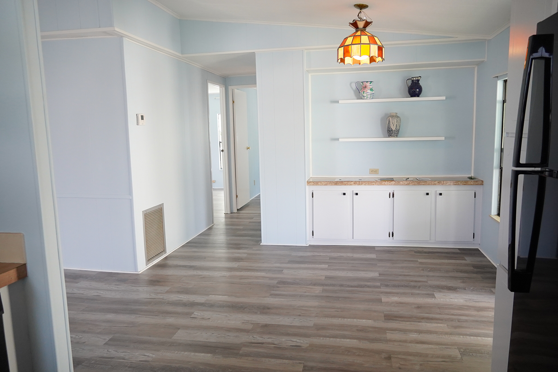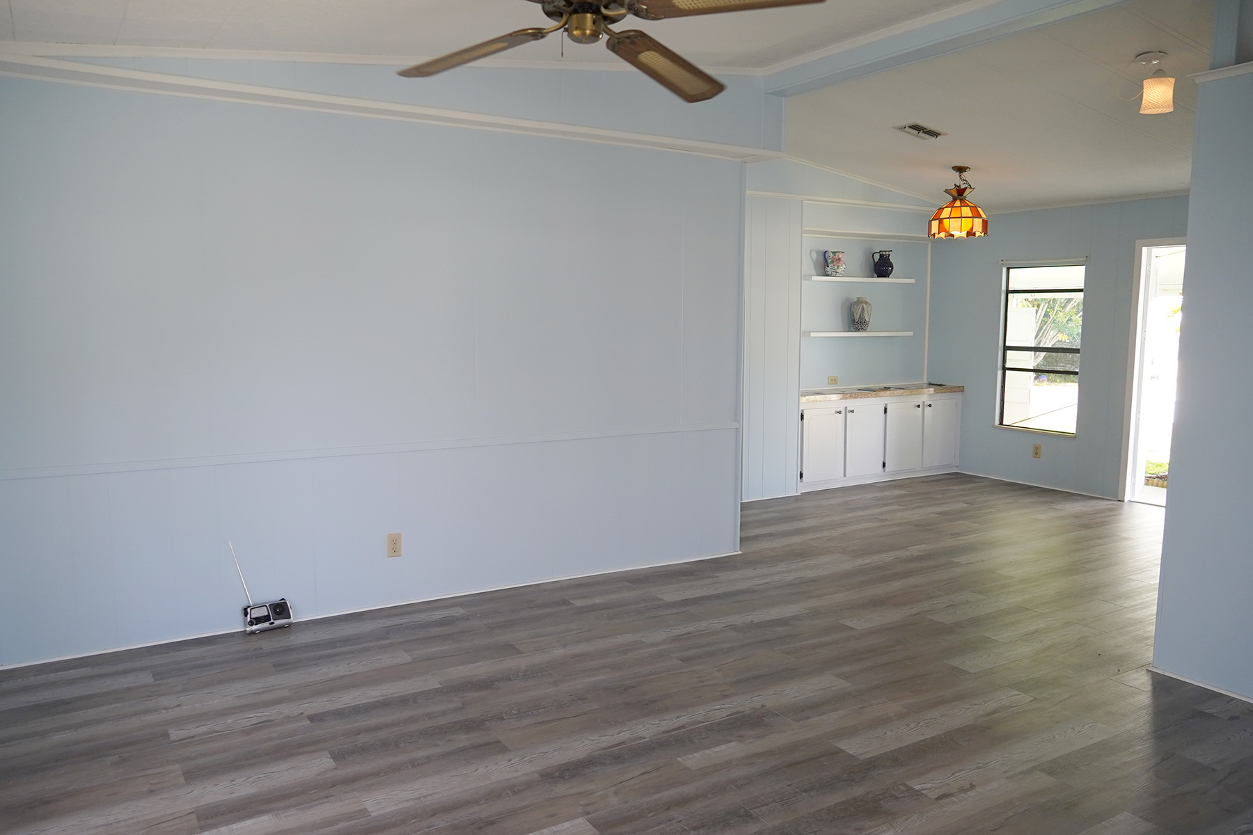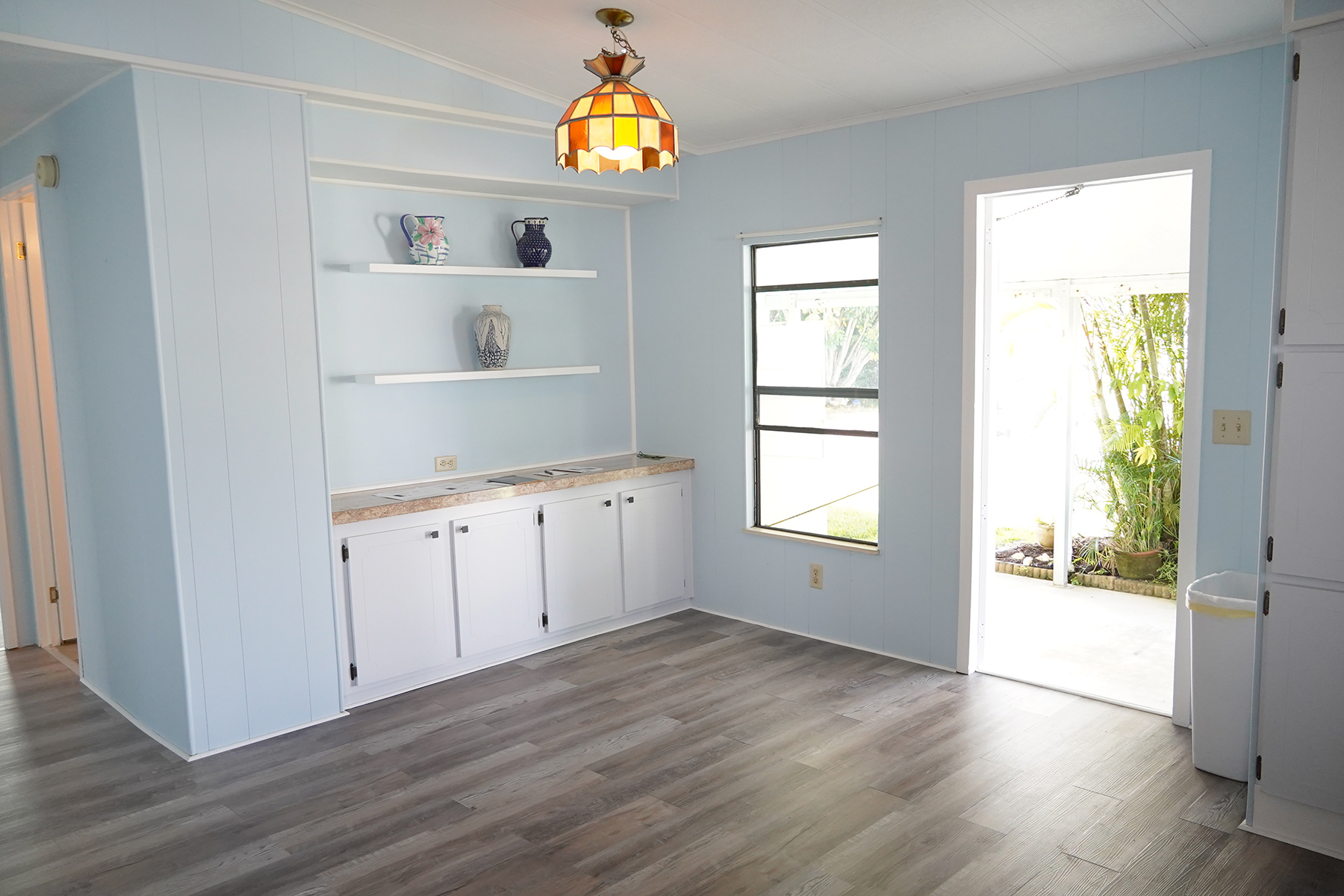 • $8k appliance credit!! Light, bright and airy! Florida living at it’s best with a large screened in porch across the entire front of the home. • New floors! Plywood subfloor with laminate wood, Updated vanities in the bathrooms • Cathedral ceilings in the living areas |